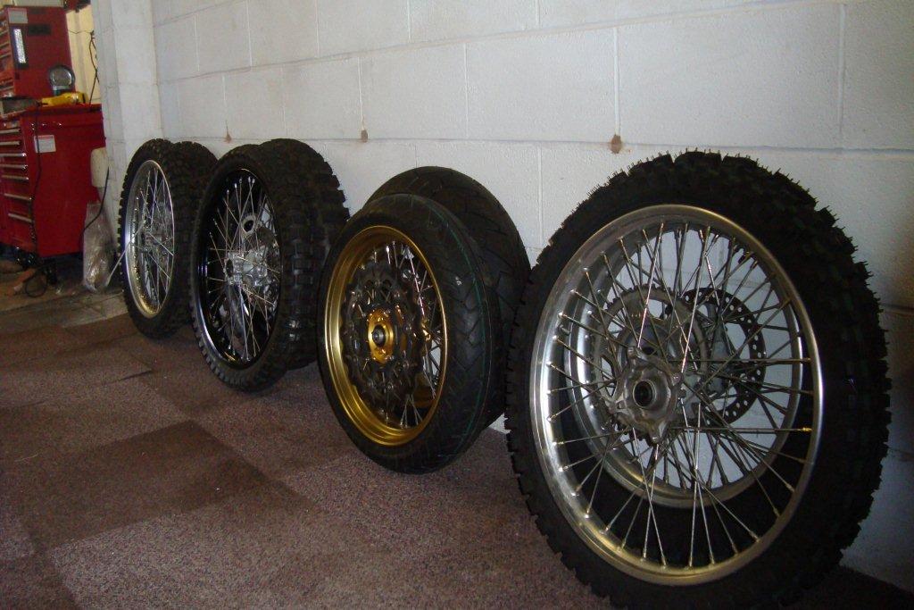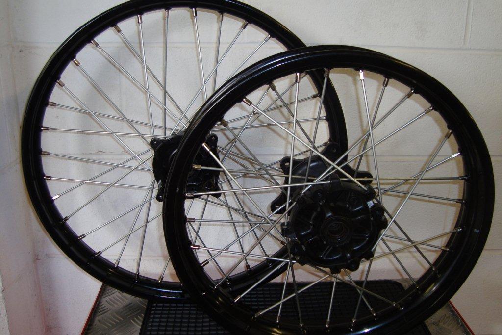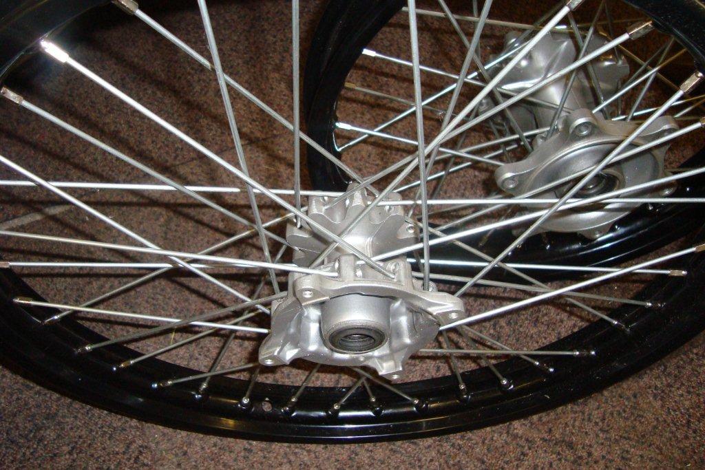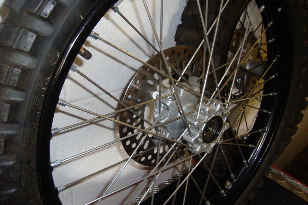 with very heavy gauge spokes, powder coated rims, these are built to Paris Dakar standards.
