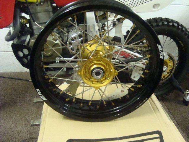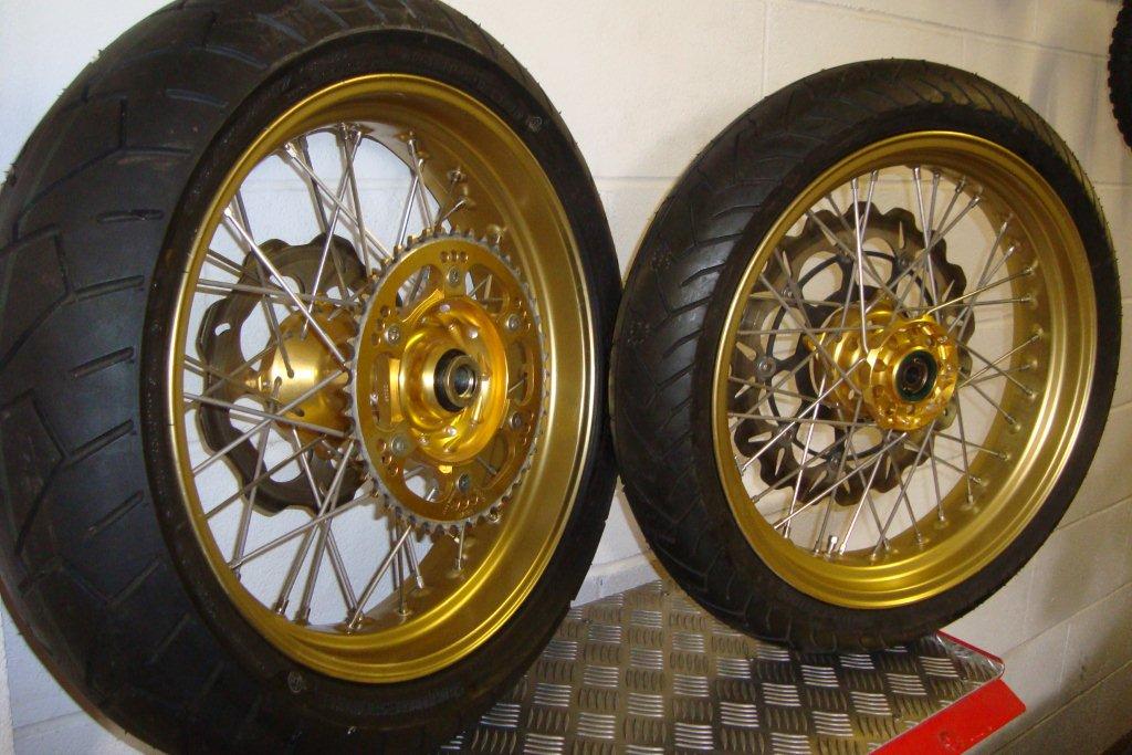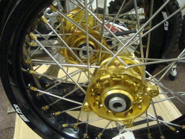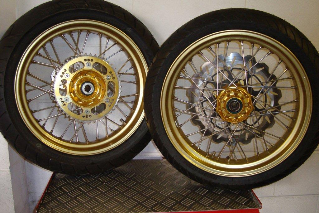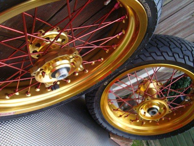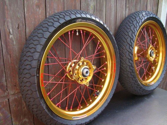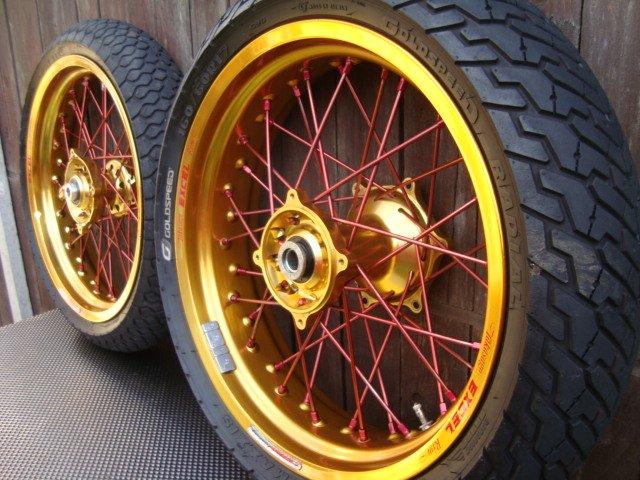 Gold Talon wheels with stainless spokes, these