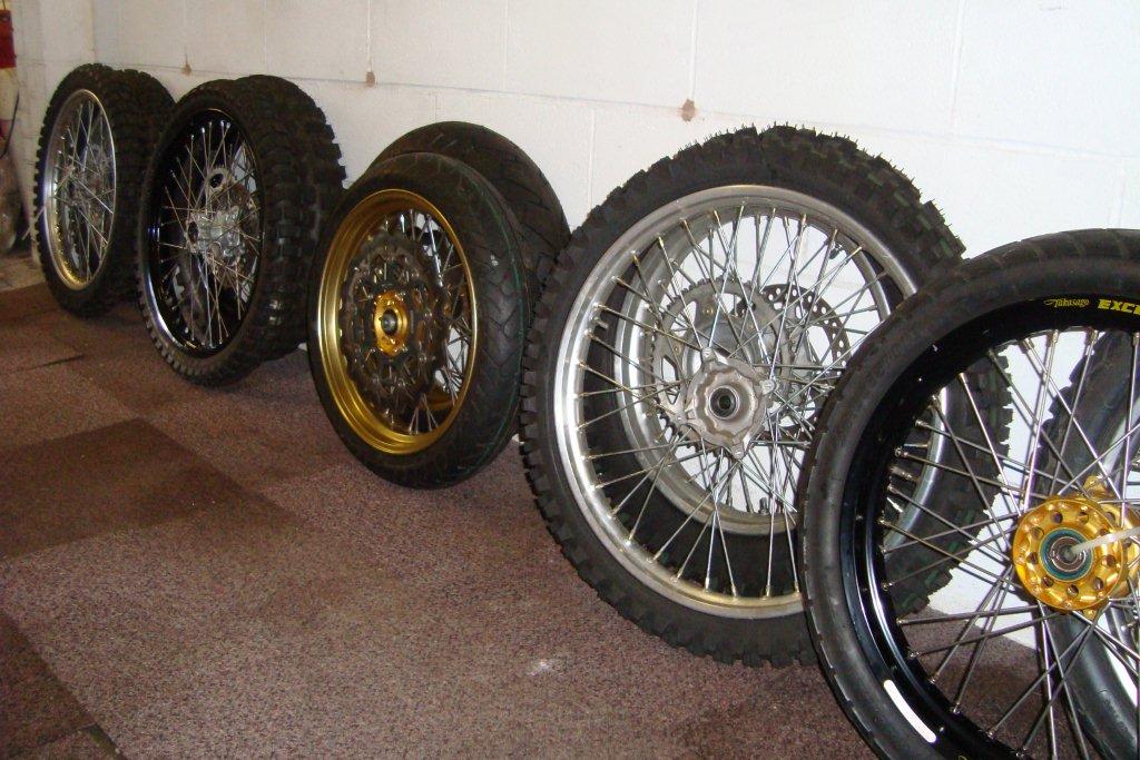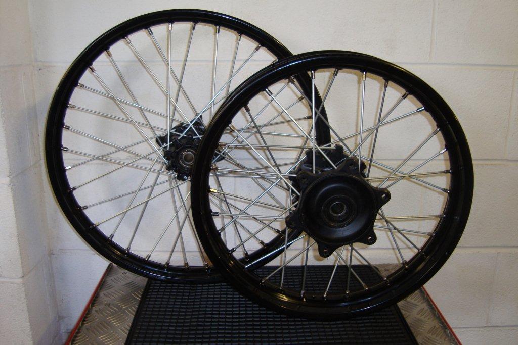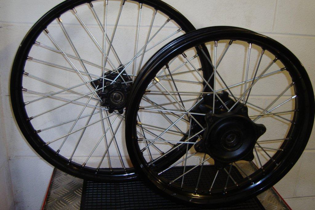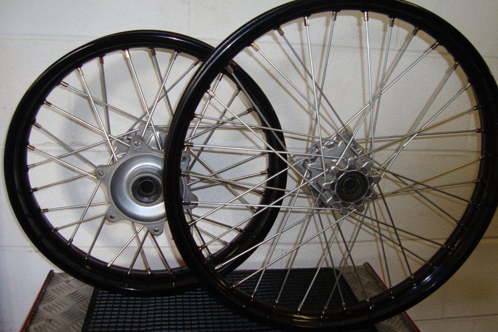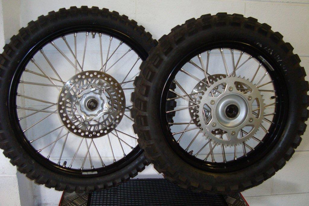 Front 21 x 160. Back 18 x 215. One set SuperMoto size Front 17" x 3.5 ~ Back 17" x 4.25 |