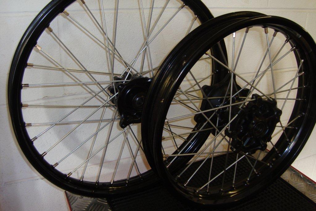 DID rims these are powder coated, same heavy gauge spokes, hubs in silver/grey.